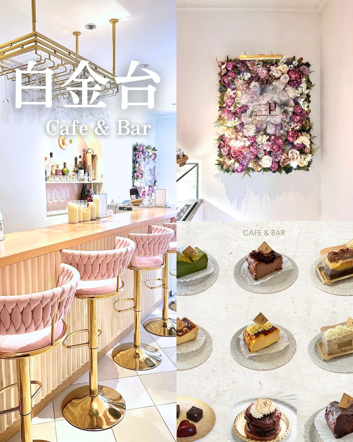 白金台駅から徒歩3分。ピンクと白のお花に囲まれたカフェで、スイーツと癒しの時間を過ごしてみませんか?