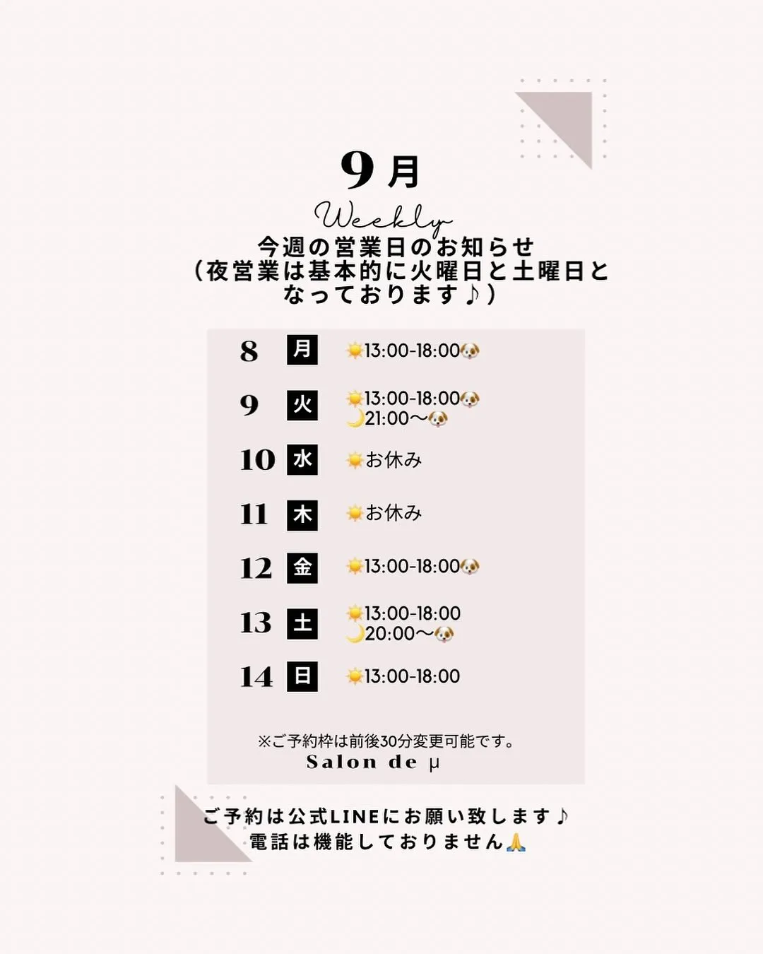 来週の営業日です♪ よろしくお願い致します🙇
